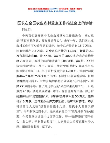 / 区长在全区农业农村重点工作推进会上的讲话