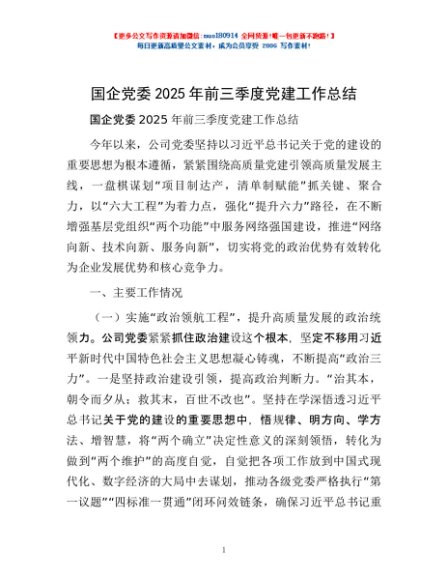 / 国企党委2025年前三季度党建工作总结