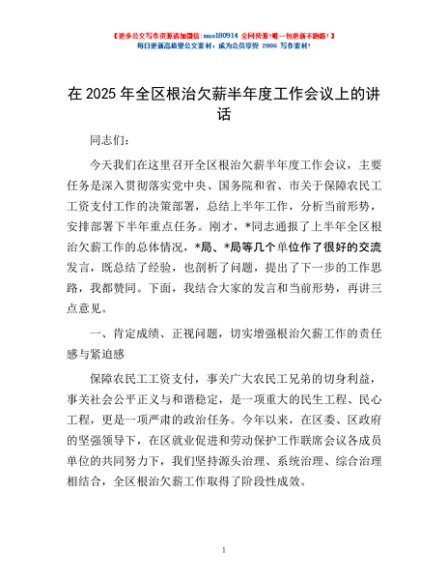 / 在2025年全区根治欠薪半年度工作会议上的讲话