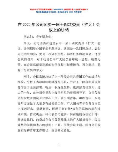 / 在2025年公司团委一届十四次委员(扩大)会议上的讲话