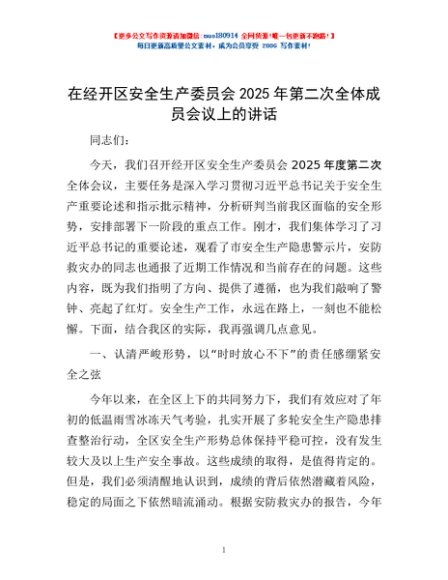 / 在经开区安全生产委员会2025年第二次全体成员会议上的讲话