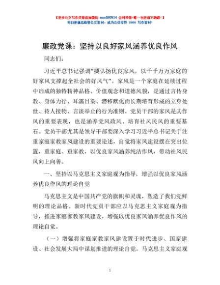 廉政党课:坚持以良好家风涵养优良作风
