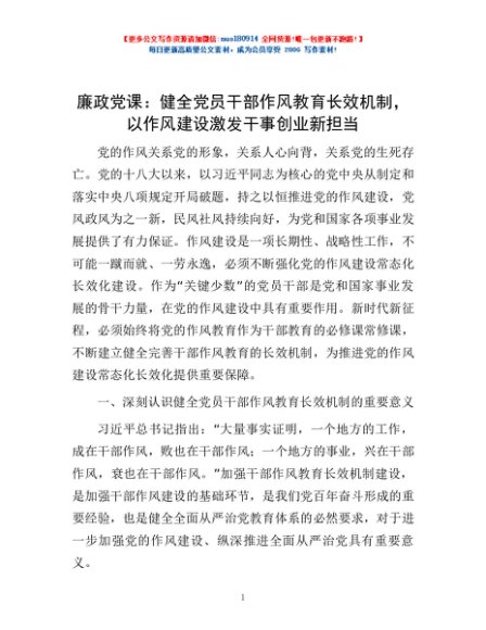 / 廉政党课:健全党员干部作风教育长效机制,以作风建设激发干事创业新担当