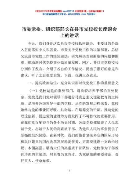 / 市委常委、组织部部长在县市党校校长座谈会上的讲话
