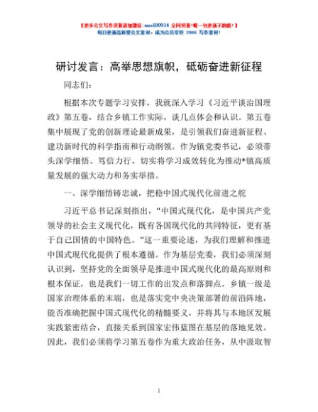 / 研讨发言:高举思想旗帜,砥砺奋进新征程