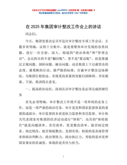 / 在2025年集团审计整改工作会上的讲话