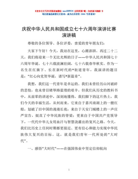 / 庆祝中华人民共和国成立七十六周年演讲比赛演讲稿_001