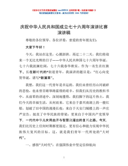 / 庆祝中华人民共和国成立七十六周年演讲比赛演讲稿_002