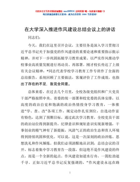 / 在大学深入推进作风建设总结会议上的讲话