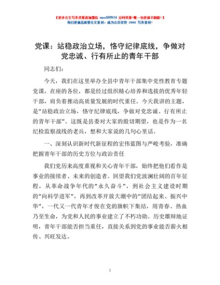 / 党课:站稳政治立场,恪守纪律底线,争做对党忠诚、行有所止的青年干部