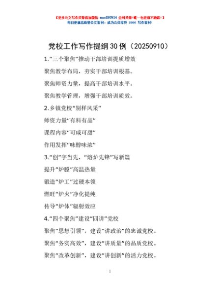 / 党校工作写作提纲30例(20250910)
