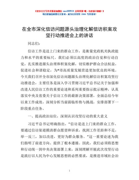 / 在全市深化信访问题源头治理化解信访积案攻坚行动推进会上的讲话
