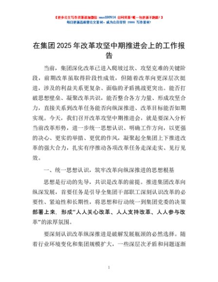 / 在集团2025年改革攻坚中期推进会上的工作报告