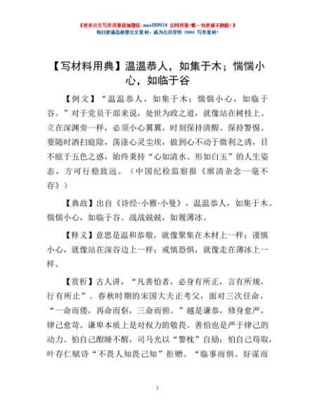 【写材料用典】温温恭人,如集于木;惴惴小心,如临于谷