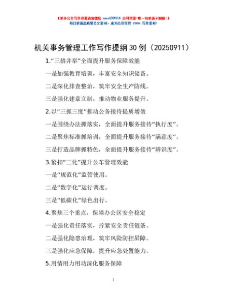/ 机关事务管理工作写作提纲30例(20250911)