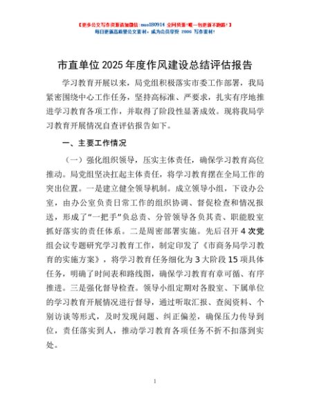 / 市直单位2025年度作风建设总结评估报告