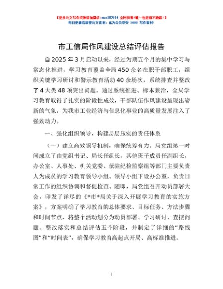/ 市工信局作风建设总结评估报告
