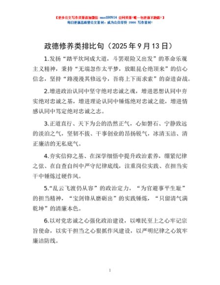 / 政德修养类排比句(2025年9月13日)