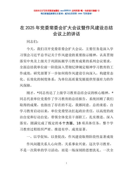 / 在2025年党委常委会扩大会议暨作风建设总结会议上的讲话