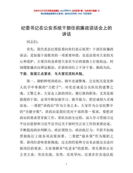 / 纪委书记在公安系统干部任前廉政谈话会上的讲话