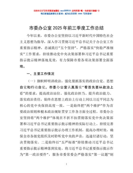 / 市委办公室2025年前三季度工作总结