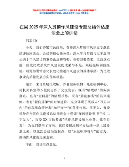 / 在局2025年深入贯彻作风建设专题总结评估座谈会上的讲话