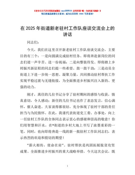 / 在2025年街道新老驻村工作队座谈交流会上的讲话