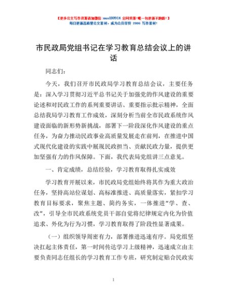 / 市民政局党组书记在学习教育总结会议上的讲话