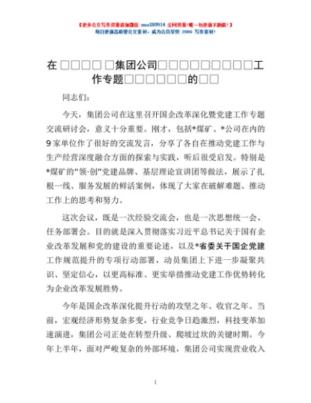 / 在2025年集团公司国企改革深化暨党建工作专题交流研讨会上的讲话