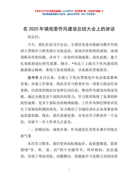 / 在2025年镇党委作风建设总结大会上的讲话