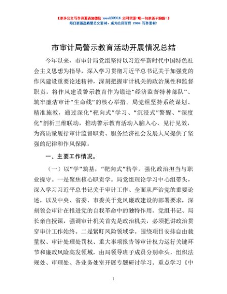 / 市审计局警示教育活动开展情况总结