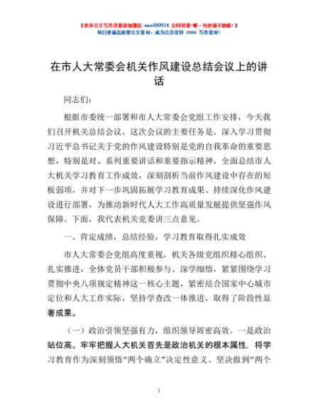 / 在市人大常委会机关作风建设总结会议上的讲话