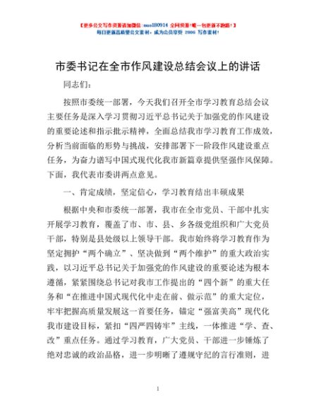 / 市委书记在全市作风建设总结会议上的讲话