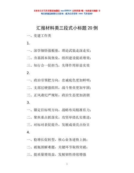 / 汇报材料类三段式小标题20例