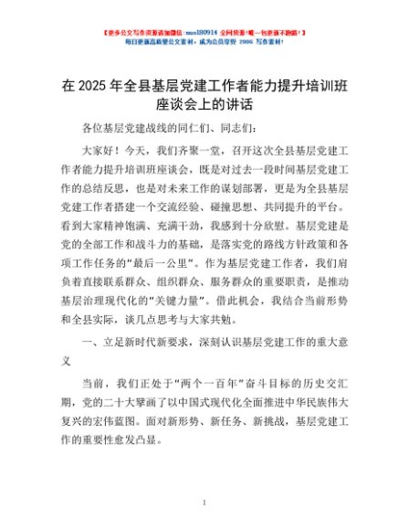 / 在2025年全县基层党建工作者能力提升培训班座谈会上的讲话