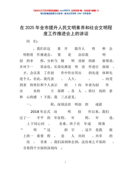 / 在2025年全市提升人民文明素养和社会文明程度工作推进会上的讲话