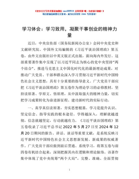 / 学习体会:学习致用,凝聚干事创业的精神力量