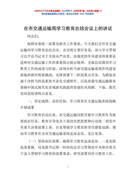 / 在市交通运输局学习教育总结会议上的讲话
