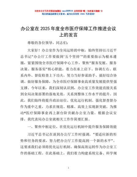 / 办公室在2025年度全市医疗保障工作推进会议上的发言