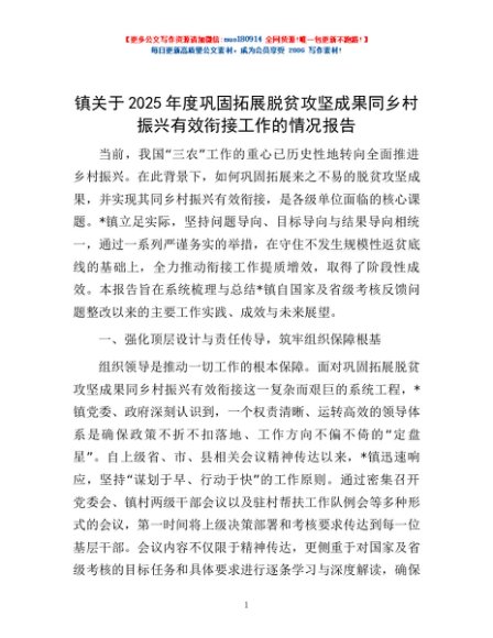/ 镇关于2025年度巩固拓展脱贫攻坚成果同乡村振兴有效衔接工作的情况报告