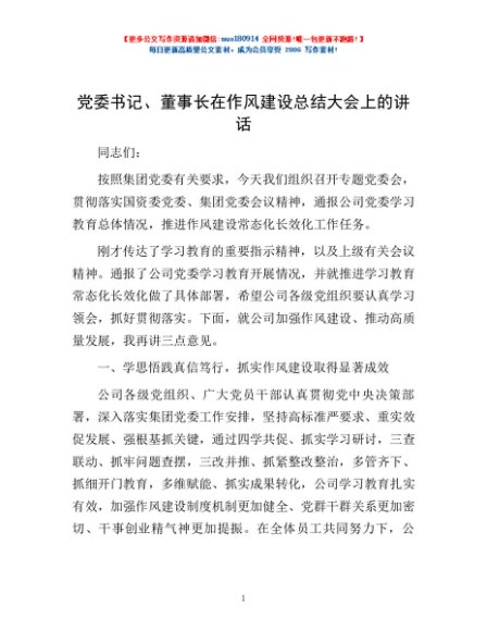/ 党委书记、董事长在作风建设总结大会上的讲话