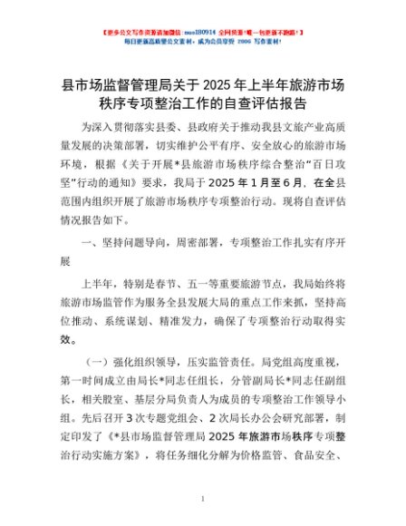 / 县市场监督管理局关于2025年上半年旅游市场秩序专项整治工作的自查评估报告
