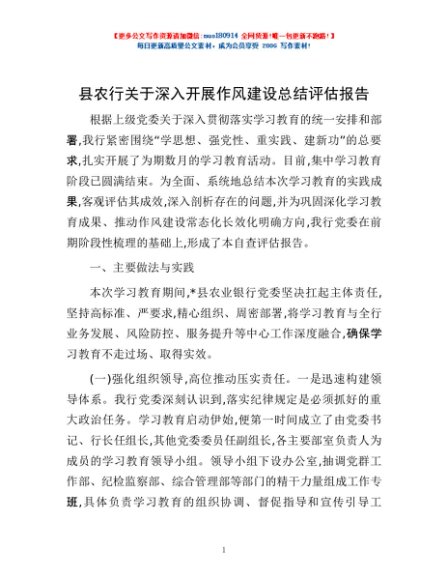 / 县农行关于深入开展作风建设总结评估报告
