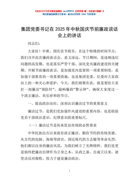 / 集团党委书记在2025年中秋国庆节前廉政谈话会上的讲话