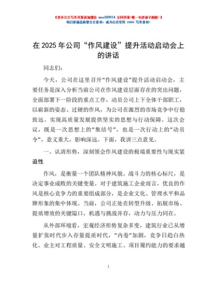 / 在2025年公司“作风建设”提升活动启动会上的讲话