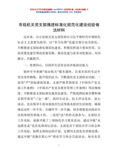 / 市级机关党支部推进标准化规范化建设经验做法材料