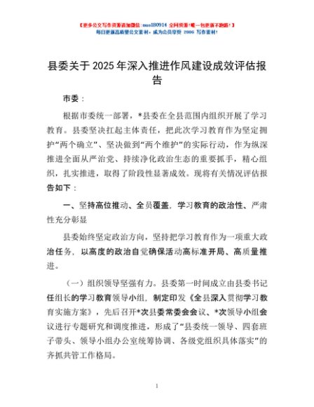 / 县委关于2025年深入推进作风建设成效评估报告
