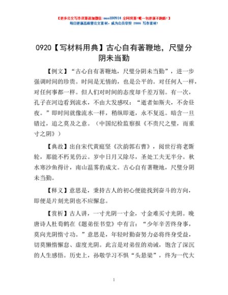 0920【写材料用典】古心自有著鞭地,尺璧分阴未当勤