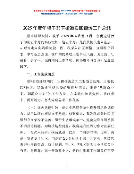 / 2025年度年轻干部下街道实践锻炼工作总结