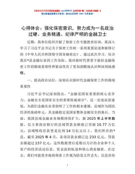 / 心得体会:强化保密意识,努力成为一名政治过硬、业务精通、纪律严明的金融卫士